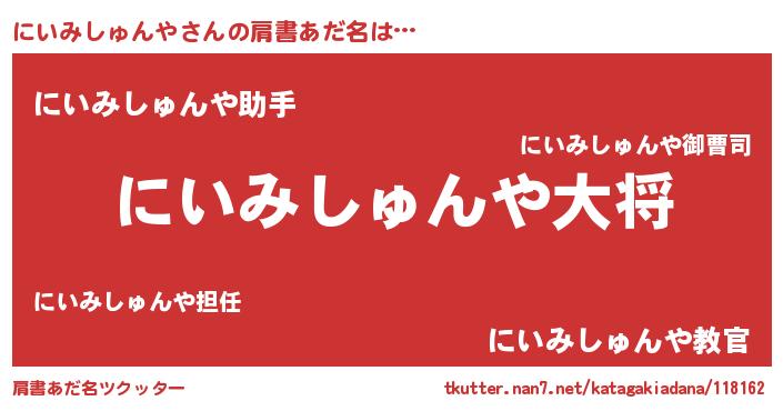 | 男性向けラノベタイトル風あだ名 | 『転生したらにいみしゅんやだった件』 |
