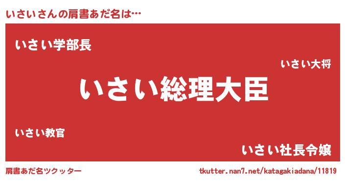 | 女子向けラノベタイトル風あだ名 | 『いさいの雑貨屋さん』『いさい恋絵巻』 |