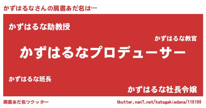 | 男性向けラノベタイトル風あだ名 | 『かずはるなに滅ぼされるだけの簡単なお仕事です』 |