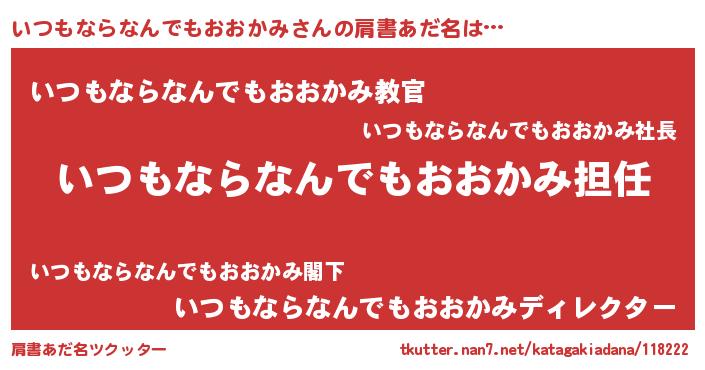 | 意味不明あだ名 | 『永久保存いつもならなんでもおおかみ』 |