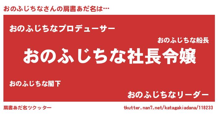 | 女子向けラノベタイトル風あだ名 | 『(仮)おのふじちなのやんごとなき事情』 |