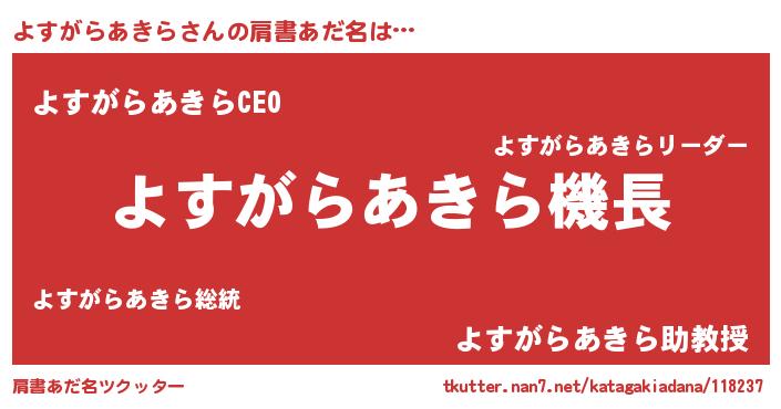 | ヒーロー風カッコイイあだ名 | 『スーパーヨスガラアキラ』 |