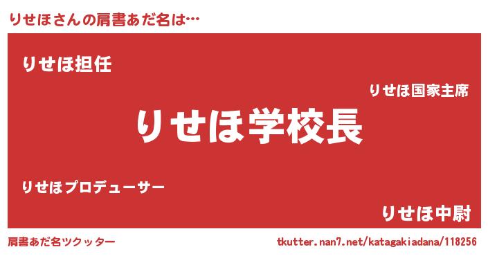| ヘコむあだ名 | 『りせほ(苦笑)』『牛乳』『りせ太郎』 |