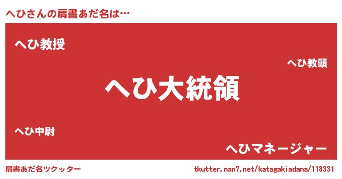 | ヒーロー風カッコイイあだ名 | 『ウルトラへひマン』『慈愛の使者へひ』 |