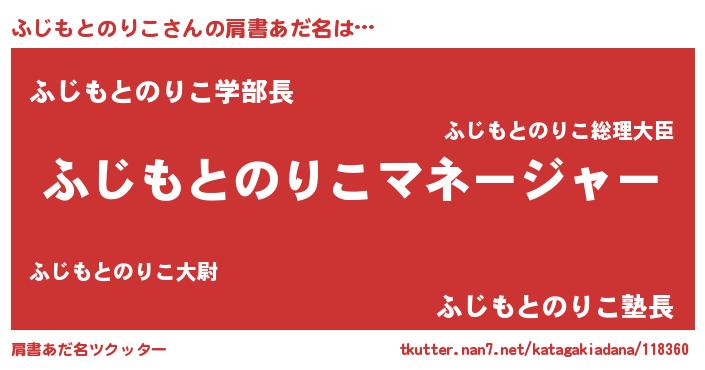 | 男性向けラノベタイトル風あだ名 | 『ふじもとのりこに滅ぼされるだけの簡単なお仕事です』 |