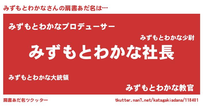 | ヘコむあだ名 | 『みずにー』『なまこ酢』 |