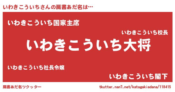 | 男性向けラノベタイトル風あだ名 | 『イワキコウイチスレイヤー』 |