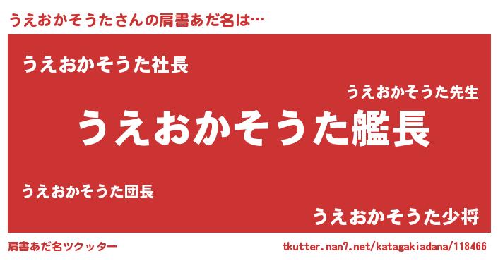 | 恥ずかしいあだ名 | 『プリティーうえおかそうた』『うえちん』 |