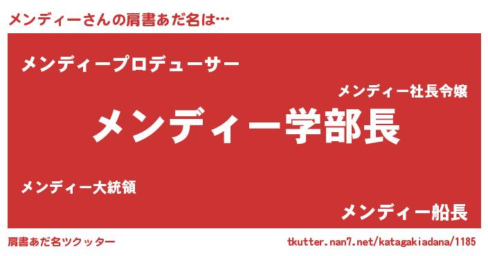| ヒーロー風カッコイイあだ名 | 『慈愛の使者メンディー』『銀牙騎士メン』 |