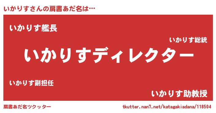 | ヒーロー風カッコイイあだ名 | 『愛の使者いかりす』『最強戦士イカリス』 |
