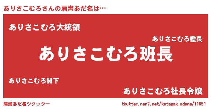 | 意味不明あだ名 | 『とにかく怪しいありさこむろ』 |