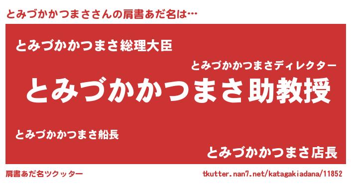 | 男性向けラノベタイトル風あだ名 | 『おまえをオタクにしてやるから、俺をとみづかかつまさにしてくれ! 』 |