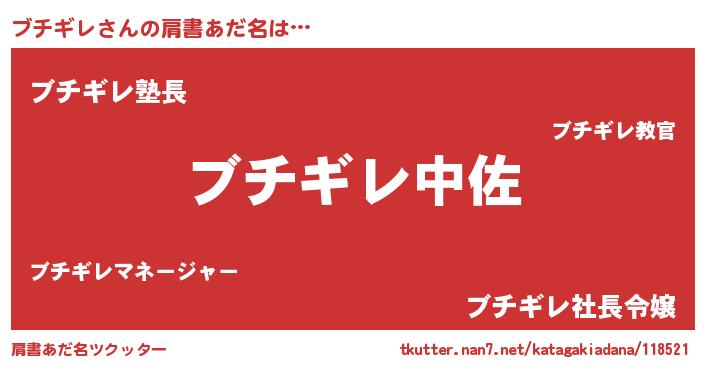 | ヒーロー風カッコイイあだ名 | 『銀牙騎士ブチ』『スーパーブチギレ』 |