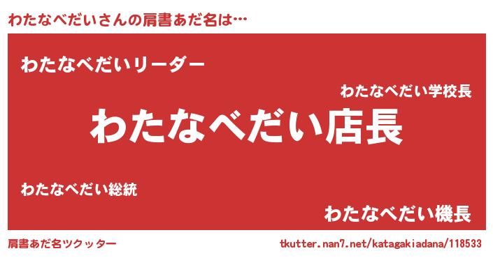 | 意味不明あだ名 | 『ペロリンわたなべだい』 |