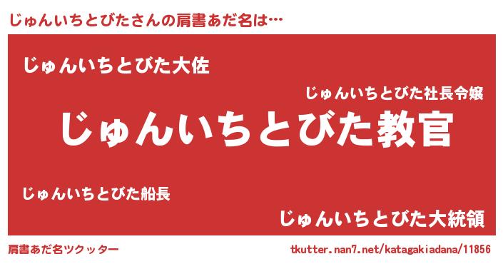 | 男性向けラノベタイトル風あだ名 | 『この素晴らしい世界にじゅんいちとびたを!』 |