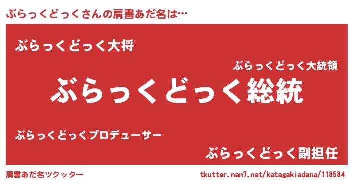 | 男性向けラノベタイトル風あだ名 | 『Re:ぶらっくどっくから始める異世界生活』 |