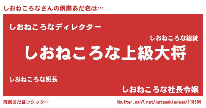 | 女子向けラノベタイトル風あだ名 | 『しおねころなの玉の輿計画!』 |