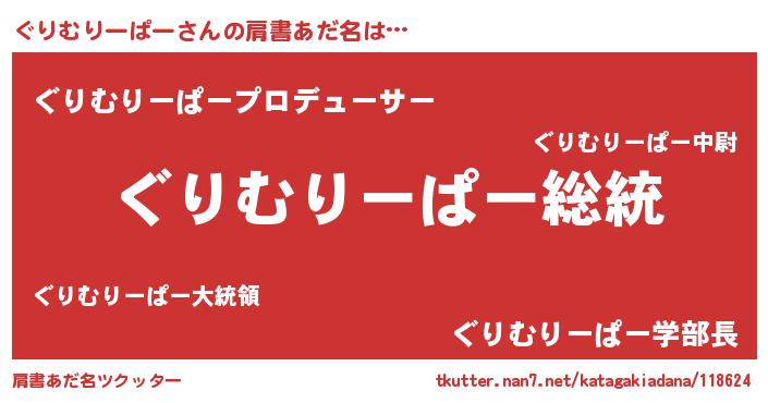 | 意味不明あだ名 | 『自称ぐりむりーぱー』 |