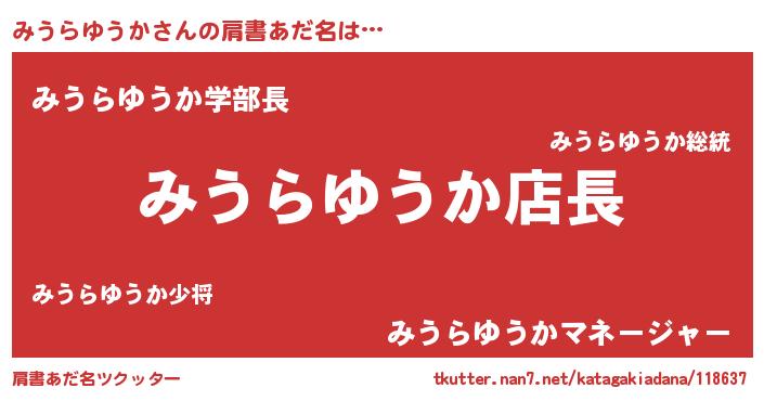 | 女子向けラノベタイトル風あだ名 | 『(仮)みうらゆうかのやんごとなき事情』 |