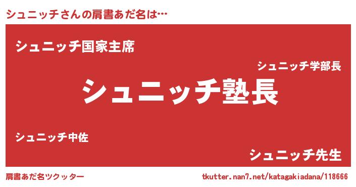 | ポケモン風あだ名 | 『ヒシュニッチ』『シュニダネ』 |