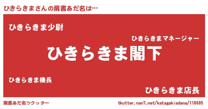 | ヒーロー風カッコイイあだ名 | 『ウルトラ戦士ヒキラキマ』 |