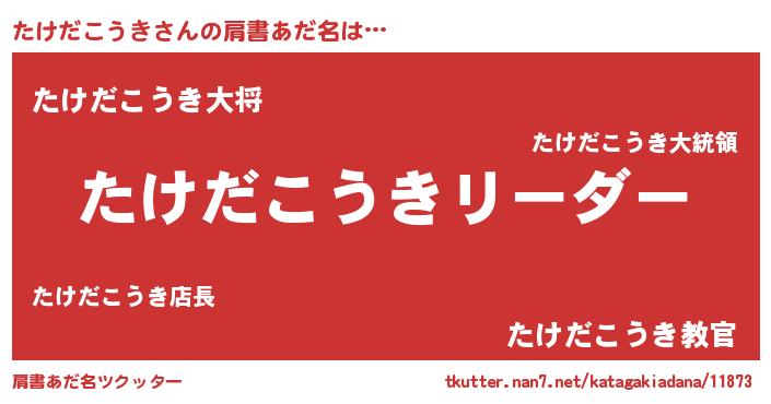 | ポケモン風あだ名 | 『ヒタケダコウキ』『タケキング』 |