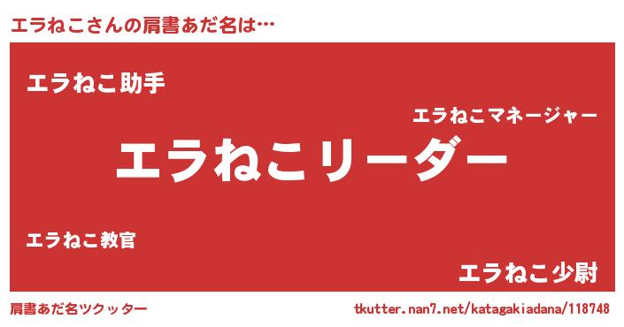 | 女子向けラノベタイトル風あだ名 | 『エラねこ様がみてる』『エラねこ恋絵巻』 |