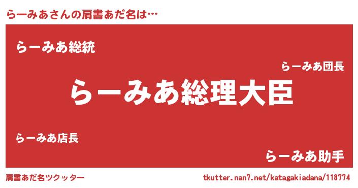 | ヒーロー風カッコイイあだ名 | 『ウルトラらーみあマン』『幻影騎士ラー』 |
