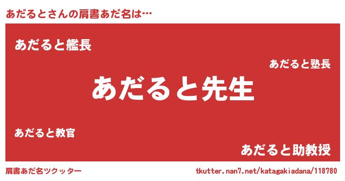 | 男性向けラノベタイトル風あだ名 | 『誰もが恐れるあのあだるとが、ぼくの専属メイドになるようです。』 |