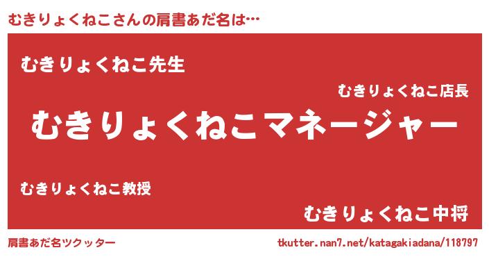 | ヘコむあだ名 | 『むきりょくねこ(笑)』『むきにー』 |