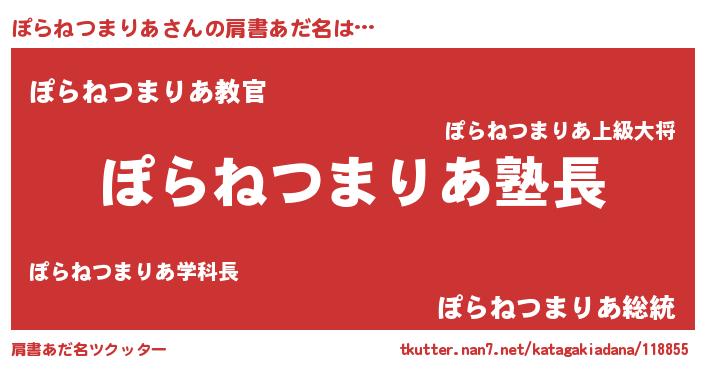 | 胡散臭い通販商品みたいなあだ名 | 『信頼と実績のネックレス…その名も「ぽらねつまりあ」』 |
