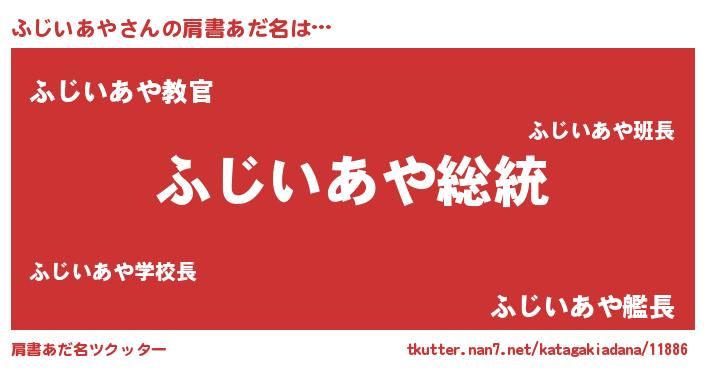 | 意味不明あだ名 | 『自称ふじいあや』『永久保存ふじいあや』 |