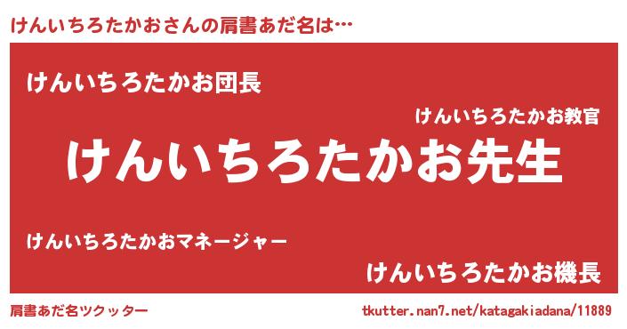 | ヘコむあだ名 | 『けんいちろたかお(小並感)』『けんを』 |