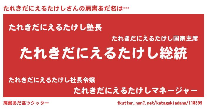 | 意味不明あだ名 | 『自称たれきだにえるたけし』 |