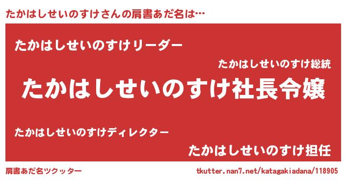 | ヒーロー風カッコイイあだ名 | 『スーパータカハシセイノスケ』 |