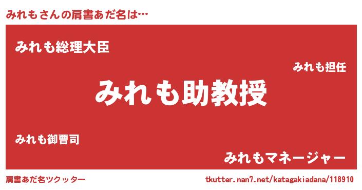 | ヒーロー風カッコイイあだ名 | 『愛の使者みれも』『ウルトラみれもマン』 |