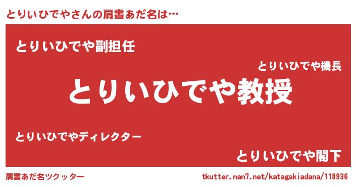| ヘコむあだ名 | 『とりいひでや(小並感)』『レバニラ』 |