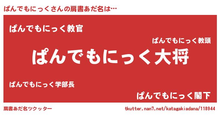| 伝説のあだ名 | 『古より伝わる勇者ぱんでもにっく』 |
