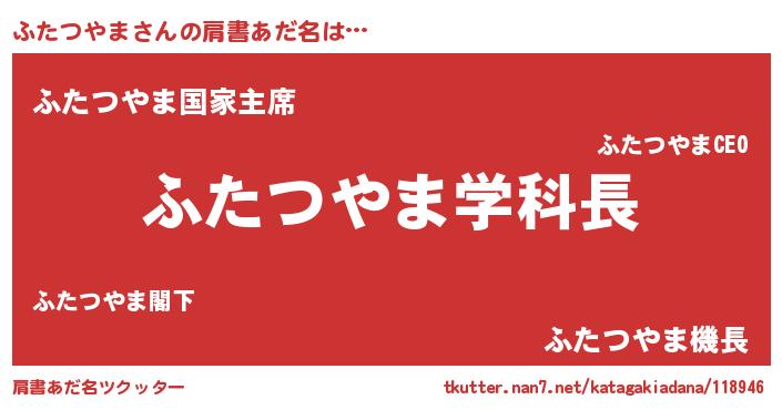 | ヒーロー風カッコイイあだ名 | 『天空の使者ふたつやま』『仮面フタダー』 |