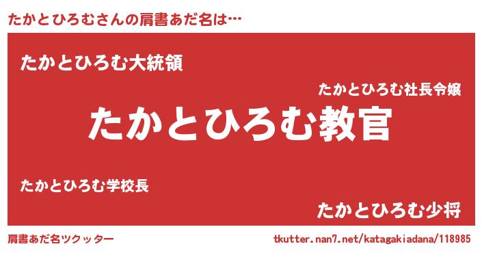 | 男性向けラノベタイトル風あだ名 | 『魔弾の王とたかとひろむ』 |