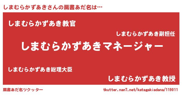 | ヒーロー風カッコイイあだ名 | 『仮面シマダー』『ネオシマムラカズアキ』 |