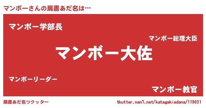 | 男性向けラノベタイトル風あだ名 | 『マンボースレイヤー』 |