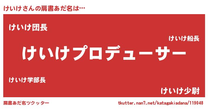 ヘコむあだ名 | 『けいっちょ』『けいけ(小並感)』 |