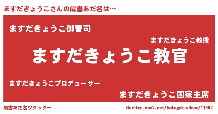 | 男性向けラノベタイトル風あだ名 | 『この素晴らしい世界にますだきょうこを!』 |