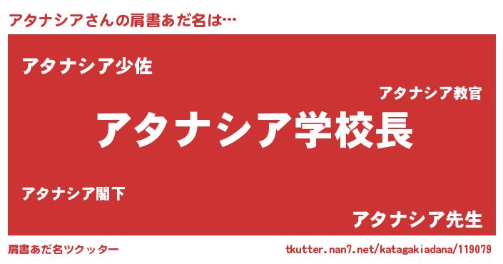 | ヒーロー風カッコイイあだ名 | 『天空の使者アタナシア』『仮面アタダー』 |