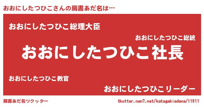 | 男性向けラノベタイトル風あだ名 | 『オオニシタツヒコアートオンライン』 |