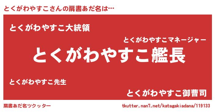 | 意味不明あだ名 | 『とくがわやすこフォーエバー』 |