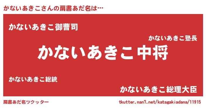 | ヒーロー風カッコイイあだ名 | 『スーパーカナイアキコ』『魔戒騎士カナ』 |