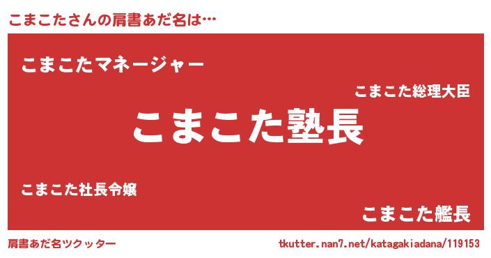 | ポケモン風あだ名 | 『ヒコマコタ』『コマゴンZ』 |