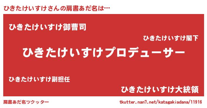 | 男性向けラノベタイトル風あだ名 | 『ひきたけいすけに滅ぼされるだけの簡単なお仕事です』 |